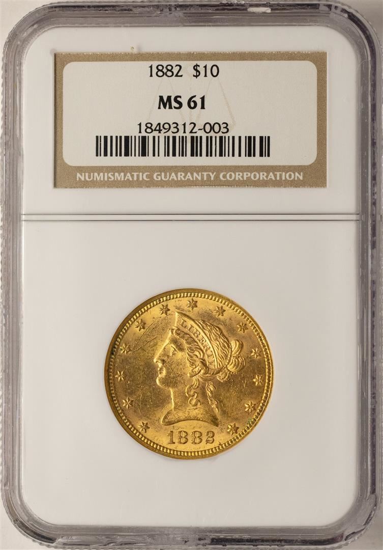 One 1882 $10 Liberty Head Eagle Gold Coin NGC MS61. NGC Certified.