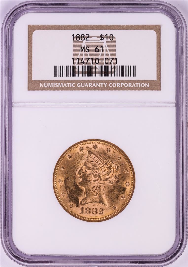 One 1882 $10 Liberty Head Eagle Gold Coin NGC MS61. NGC Certified.