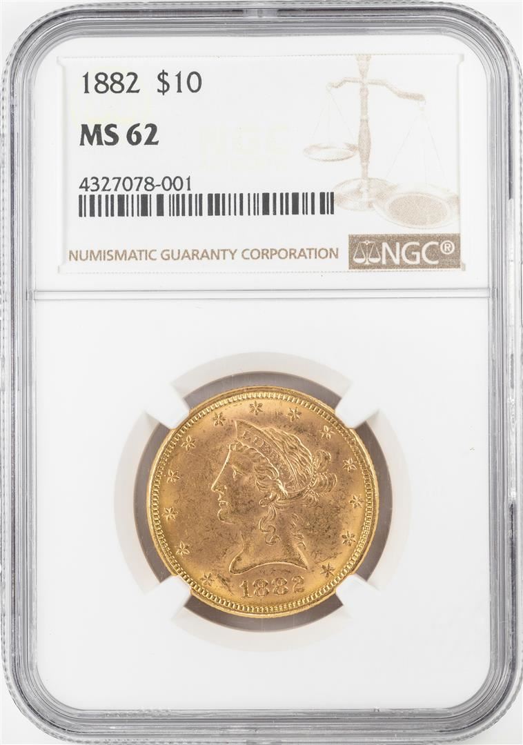 One 1882 $10 Liberty Head Eagle Gold Coin NGC MS62. NGC Certified.