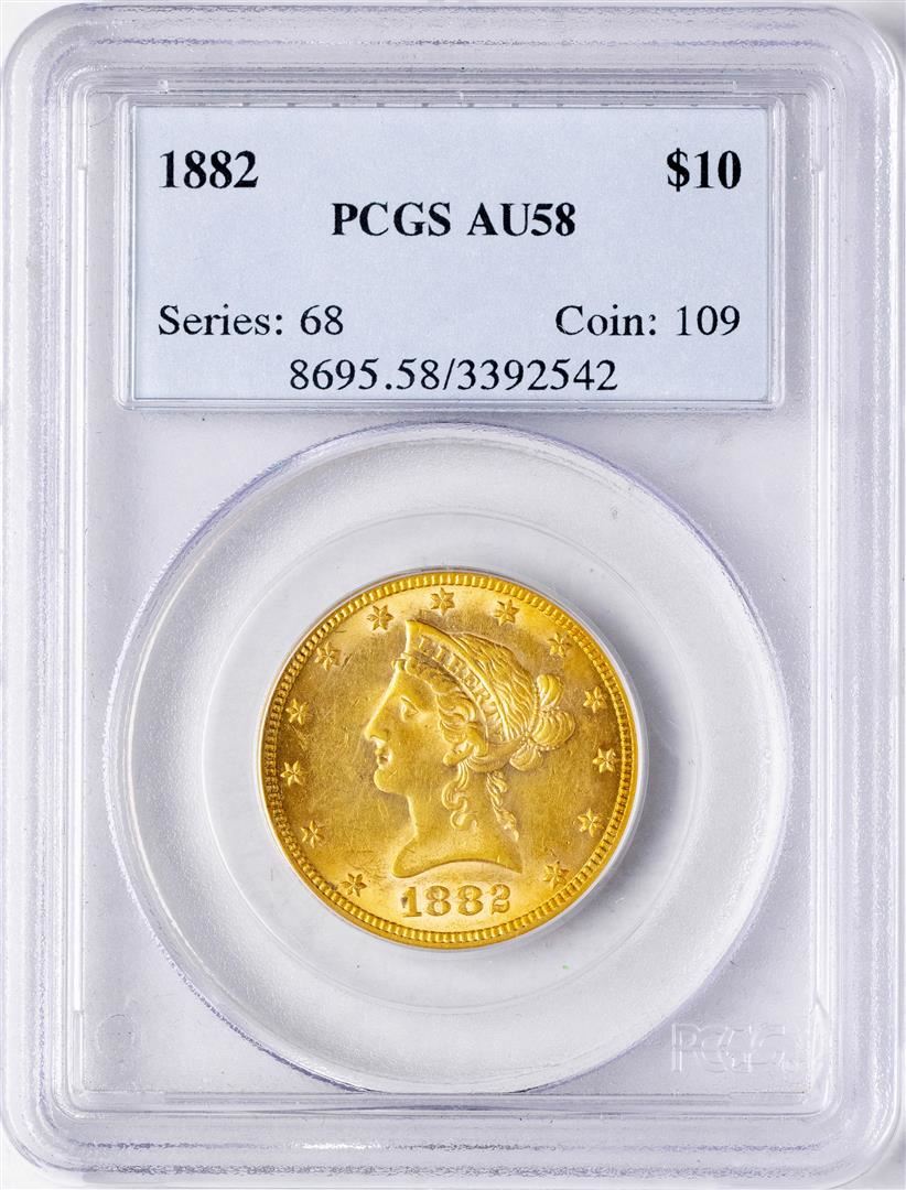 One 1882 $10 Liberty Head Eagle Gold Coin PCGS AU58. PCGS Graded.