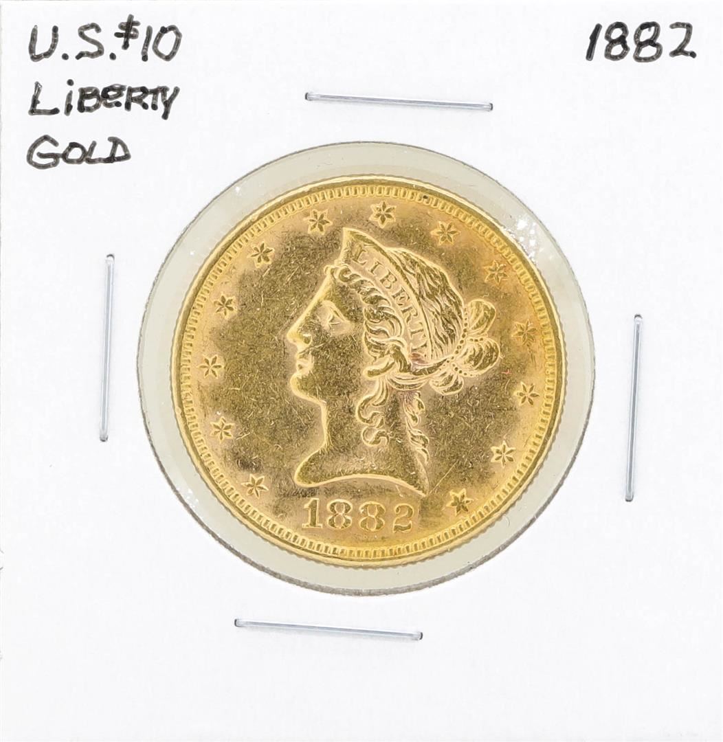 One 1882 $10 Liberty Head Eagle Gold Coin.