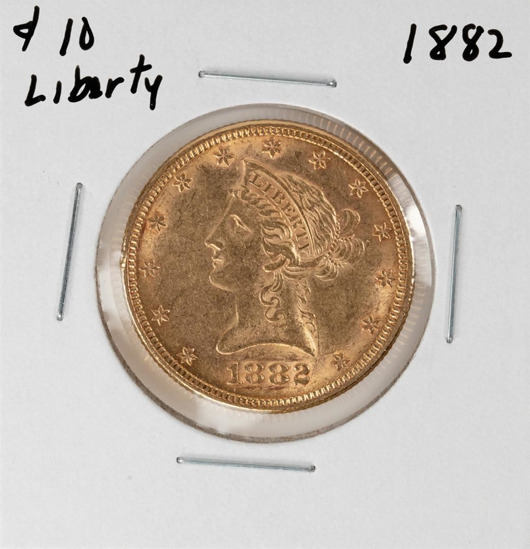 One 1882 $10 Liberty Head Eagle Gold Coin.