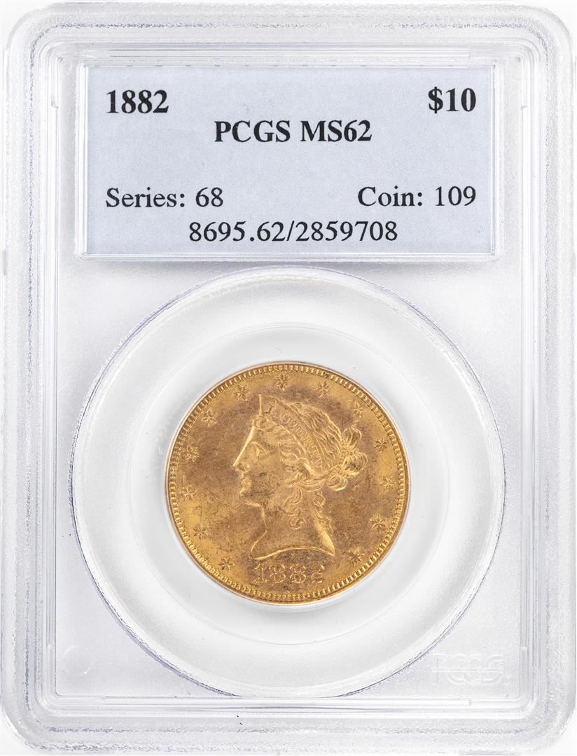 One 1882 $10 Liberty Head Half Eagle Gold Coin PCGS MS62. PCGS Graded.