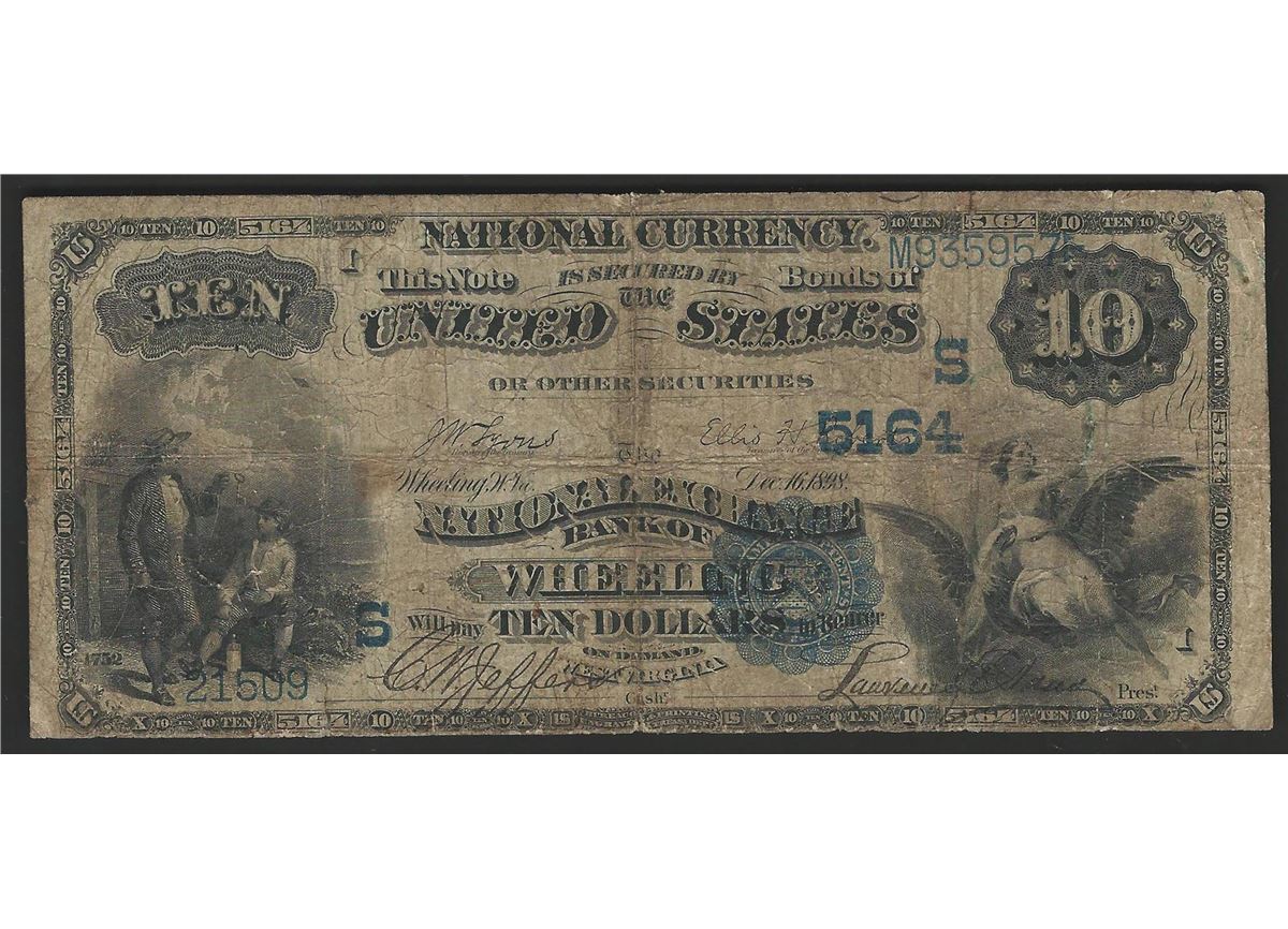 One 1882 $10 National Exchange Bank Wheeling West Virginia National Bank Note.