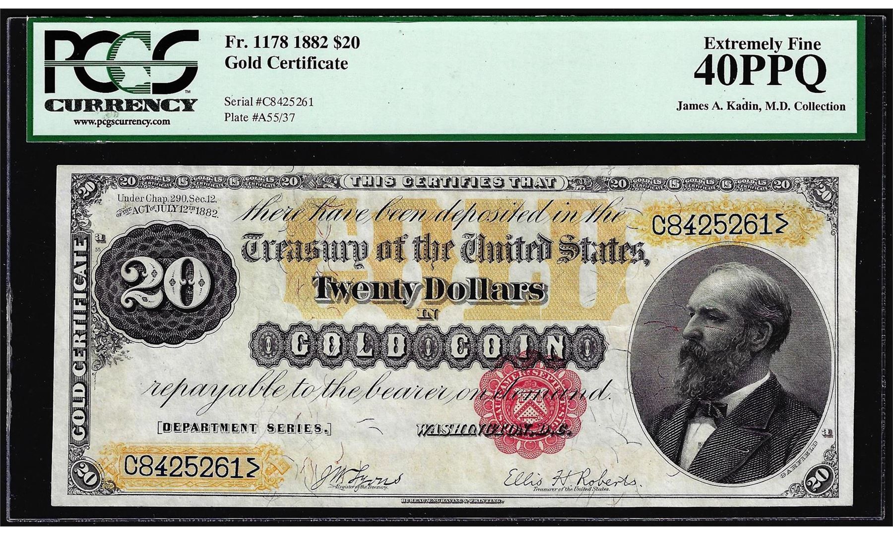 One 1882 $20 Gold Certificate Note Fr.1178 PCGS Extremely Fine 40PPQ. PCGS Graded.