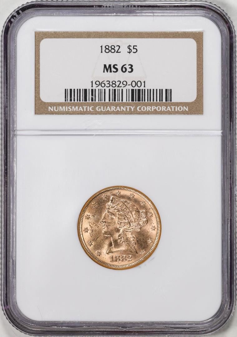 One 1882 $5 Liberty Head Half Eagle Gold Coin NGC MS63. NGC Certified.