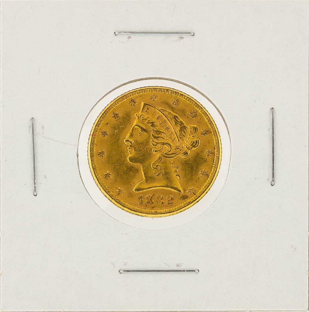 One 1882 $5 Liberty Head Half Eagle Gold Coin.