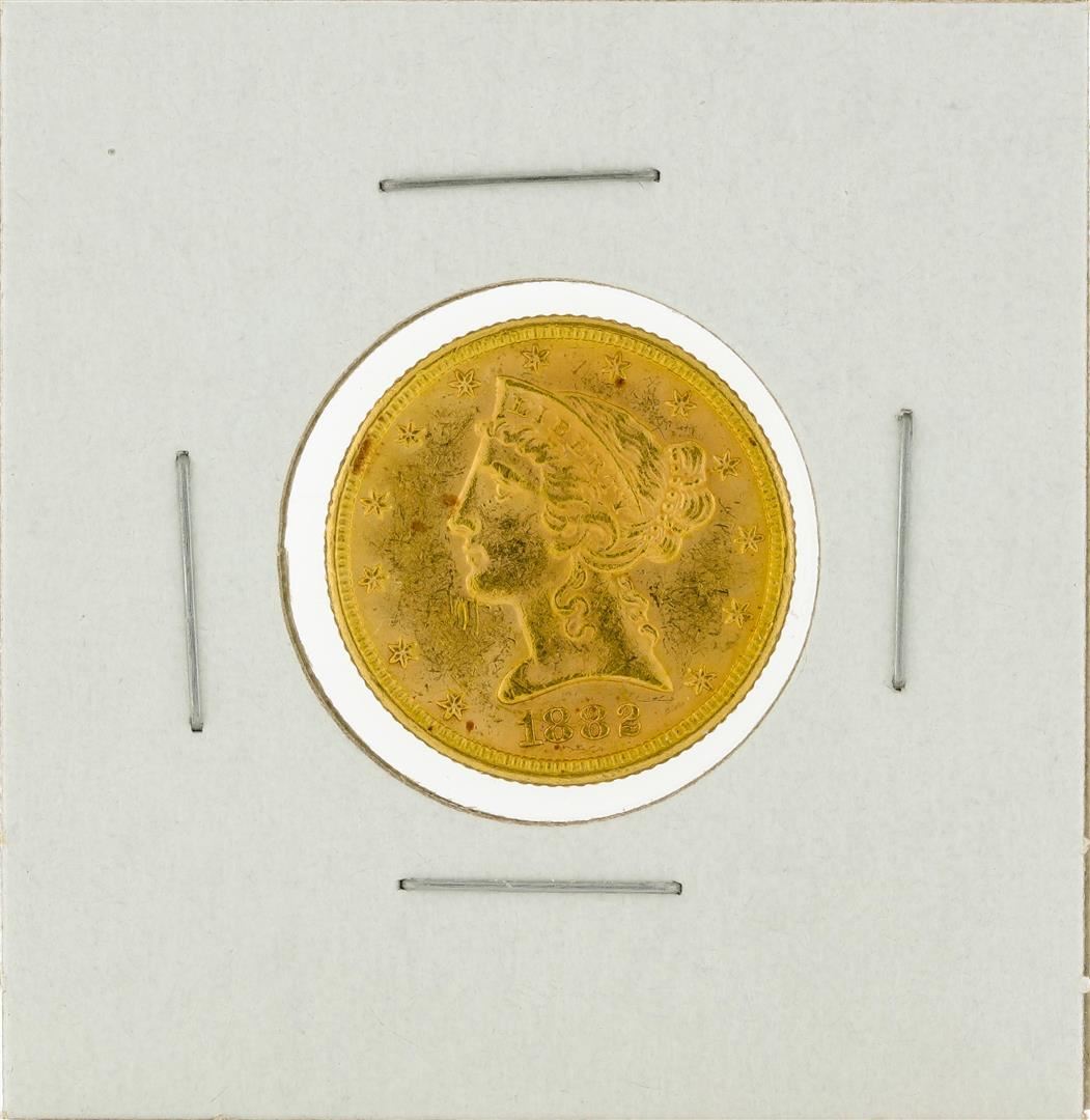 One 1882 $5 Liberty Head Half Eagle Gold Coin.