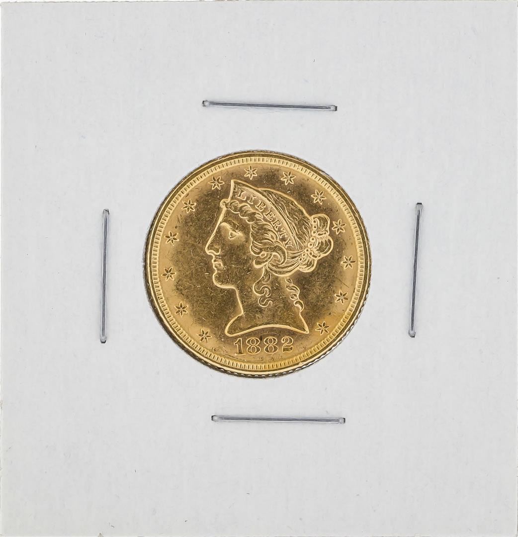One 1882 $5 Liberty Head Half Eagle Gold Coin.