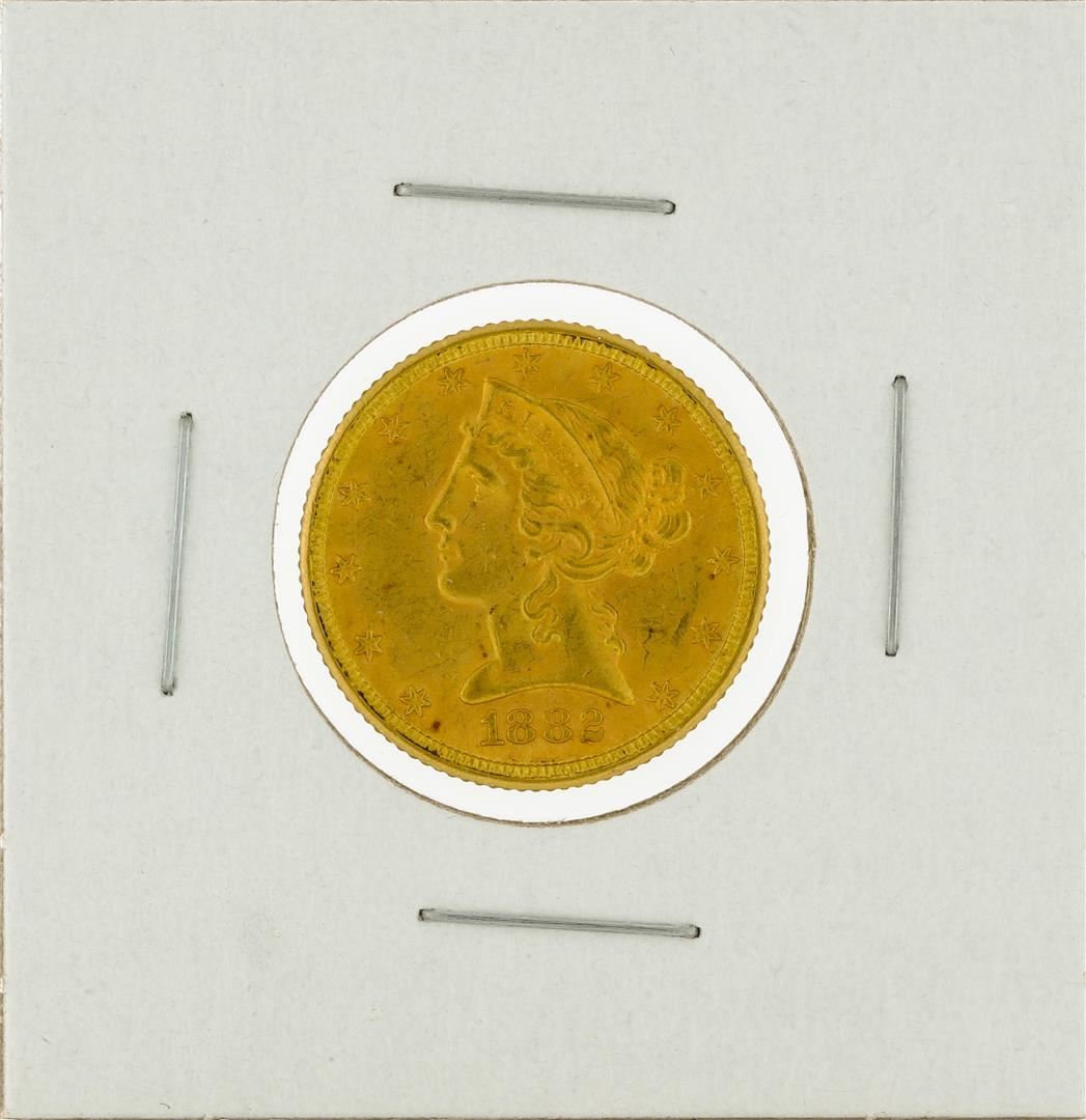 One 1882 $5 Liberty Head Half Eagle Gold Coin.