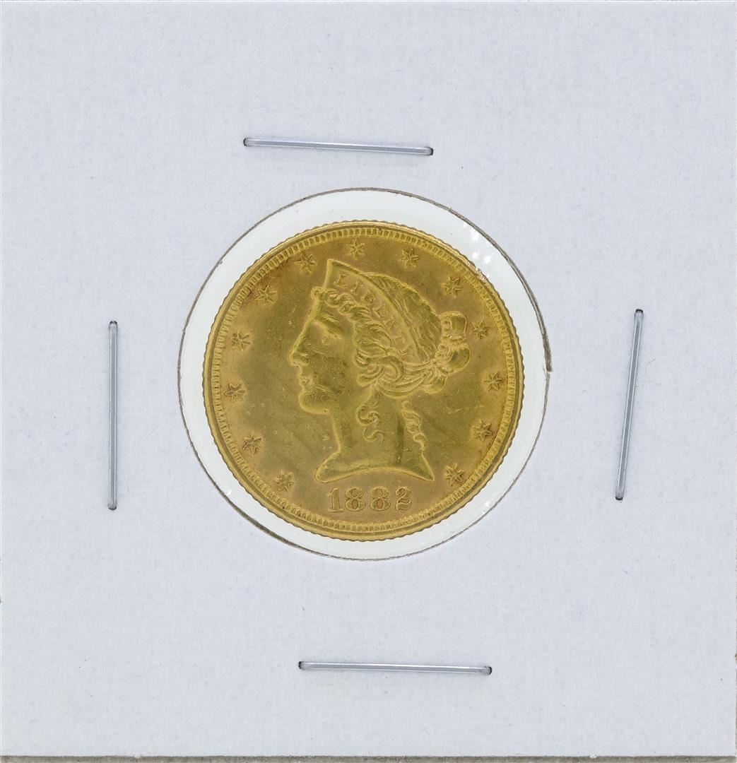 One 1882 $5 Liberty Head Half Eagle Gold Coin.