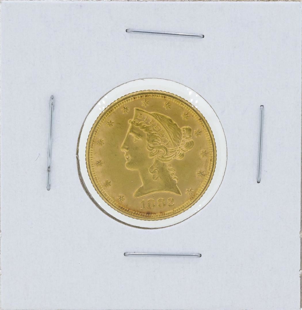 One 1882 $5 Liberty Head Half Eagle Gold Coin.