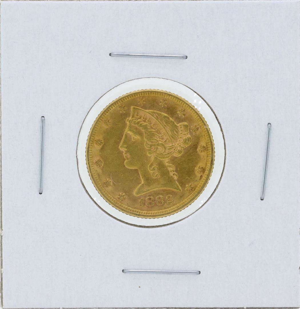 One 1882 $5 Liberty Head Half Eagle Gold Coin.