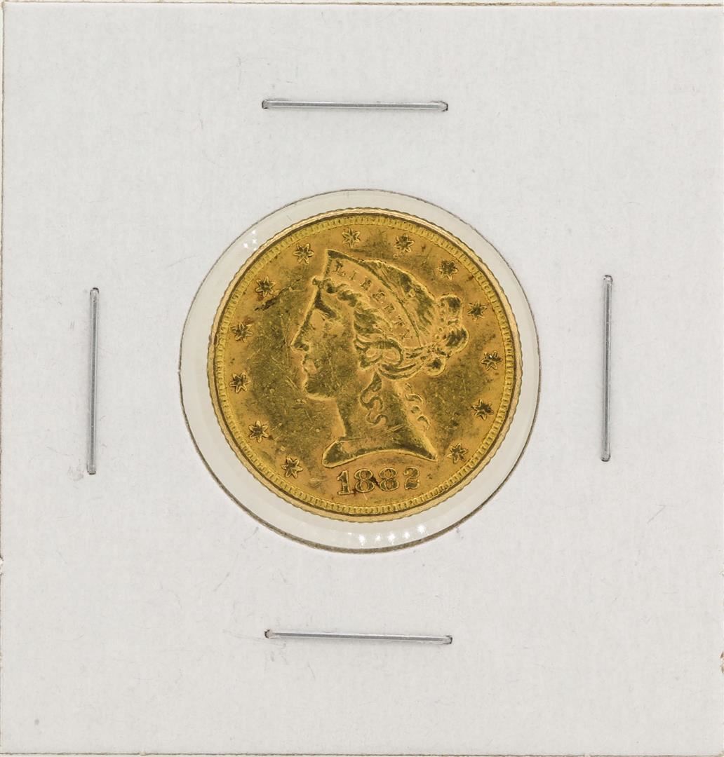 One 1882 $5 Liberty Head Half Eagle Gold Coin.