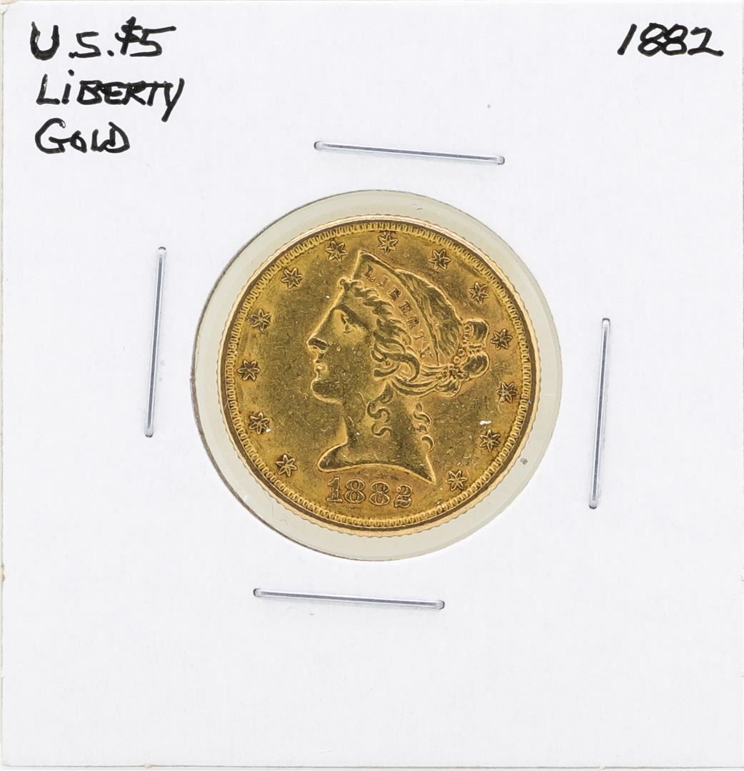 One 1882 $5 Liberty Head Half Eagle Gold Coin.