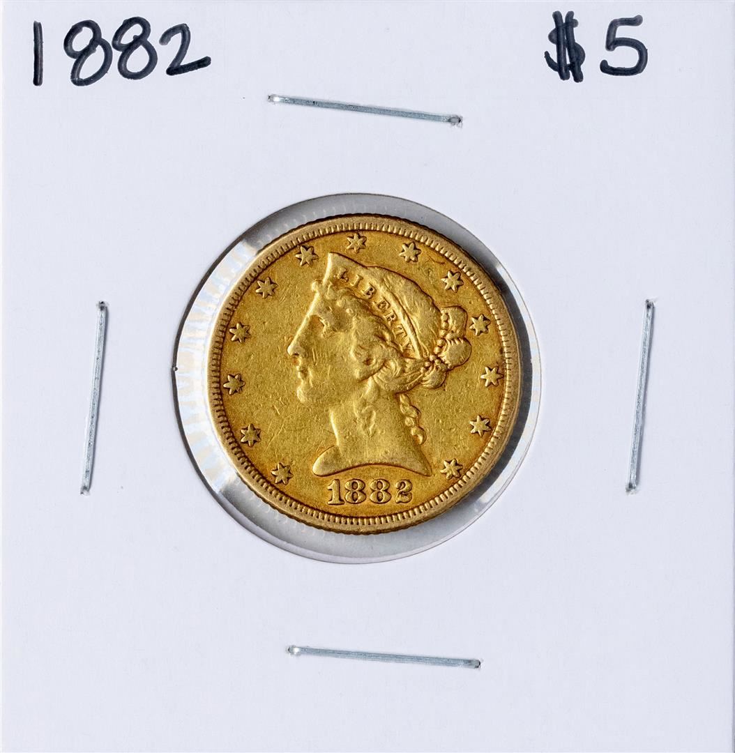 One 1882 $5 Liberty Head Half Eagle Gold Coin.