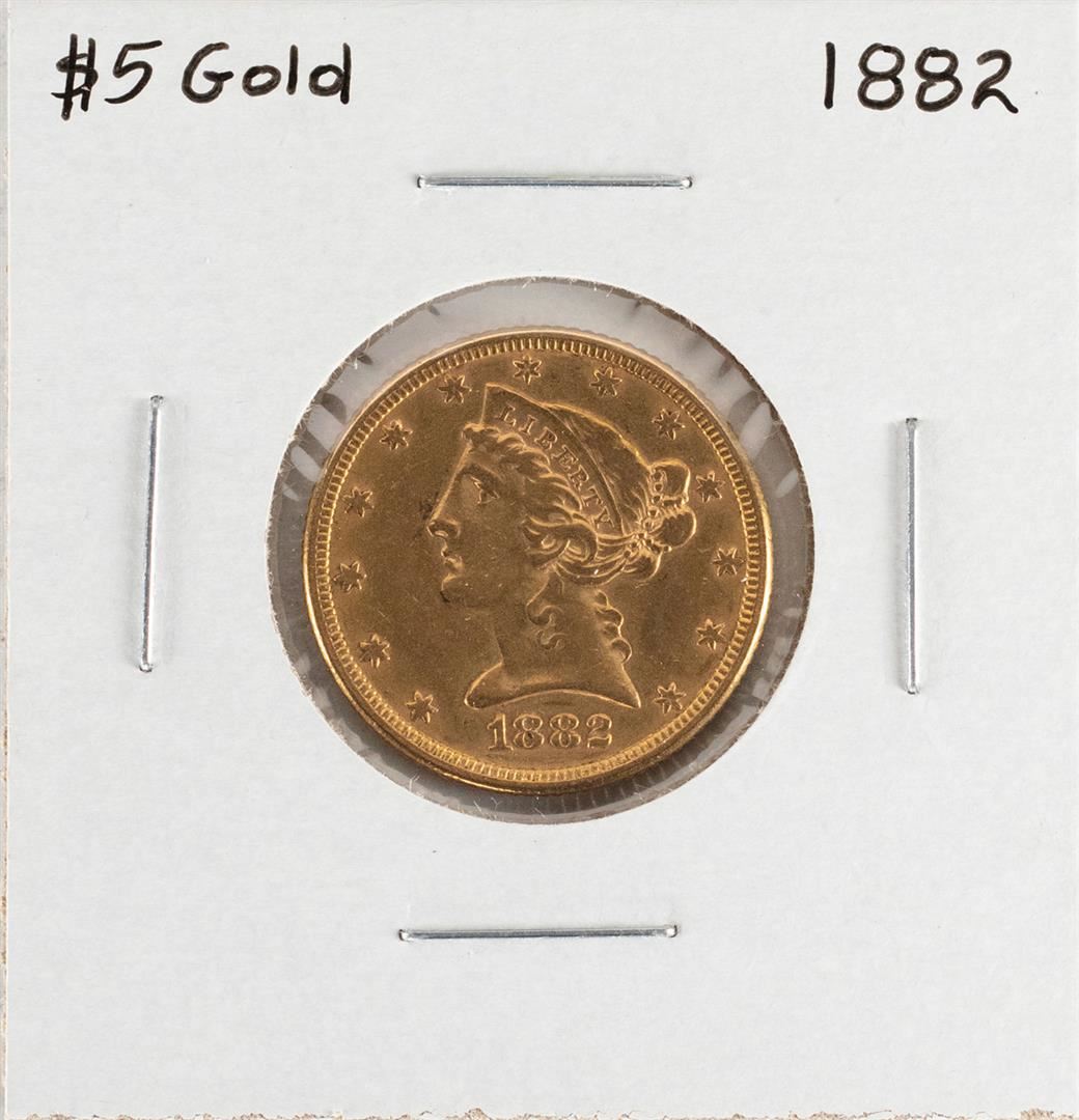 One 1882 $5 Liberty Head Half Eagle Gold Coin.