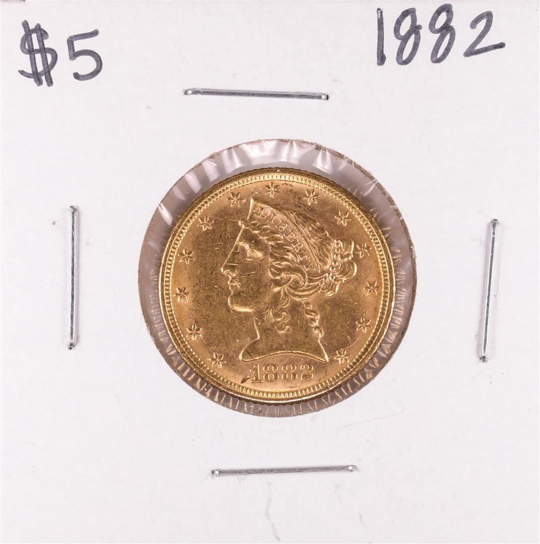 One 1882 $5 Liberty Head Half Eagle Gold Coin.