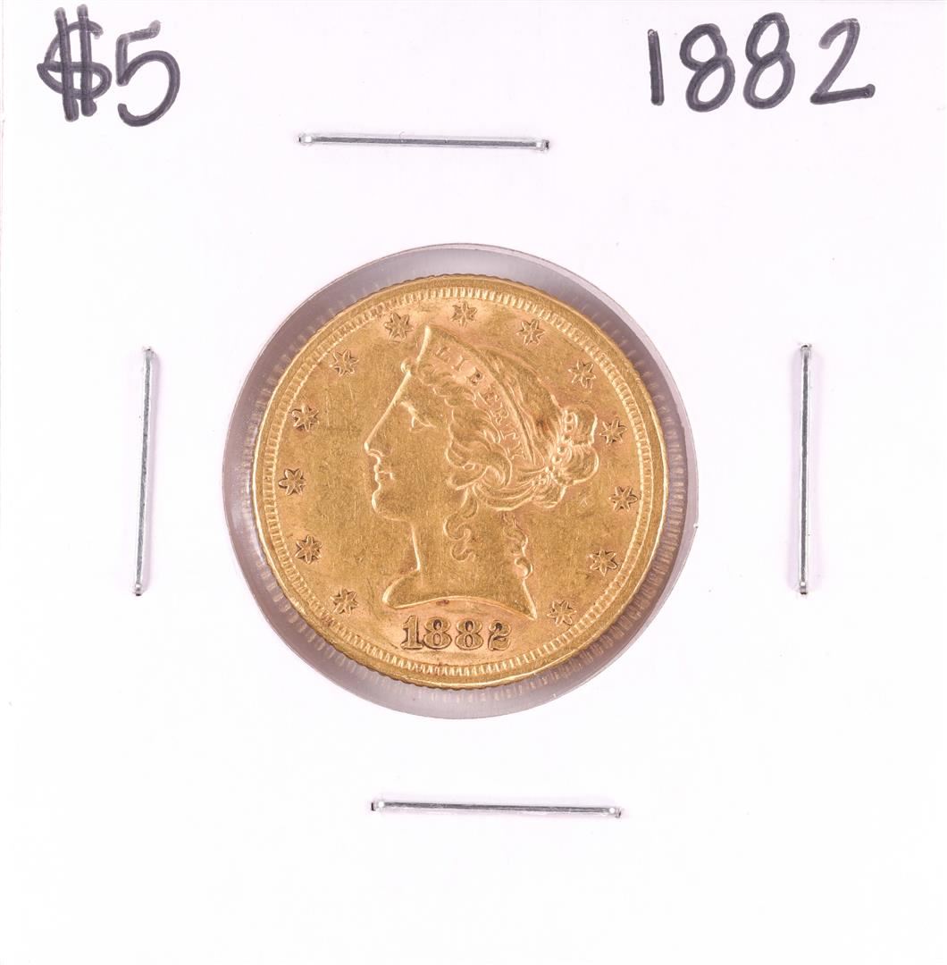 One 1882 $5 Liberty Head Half Eagle Gold Coin.