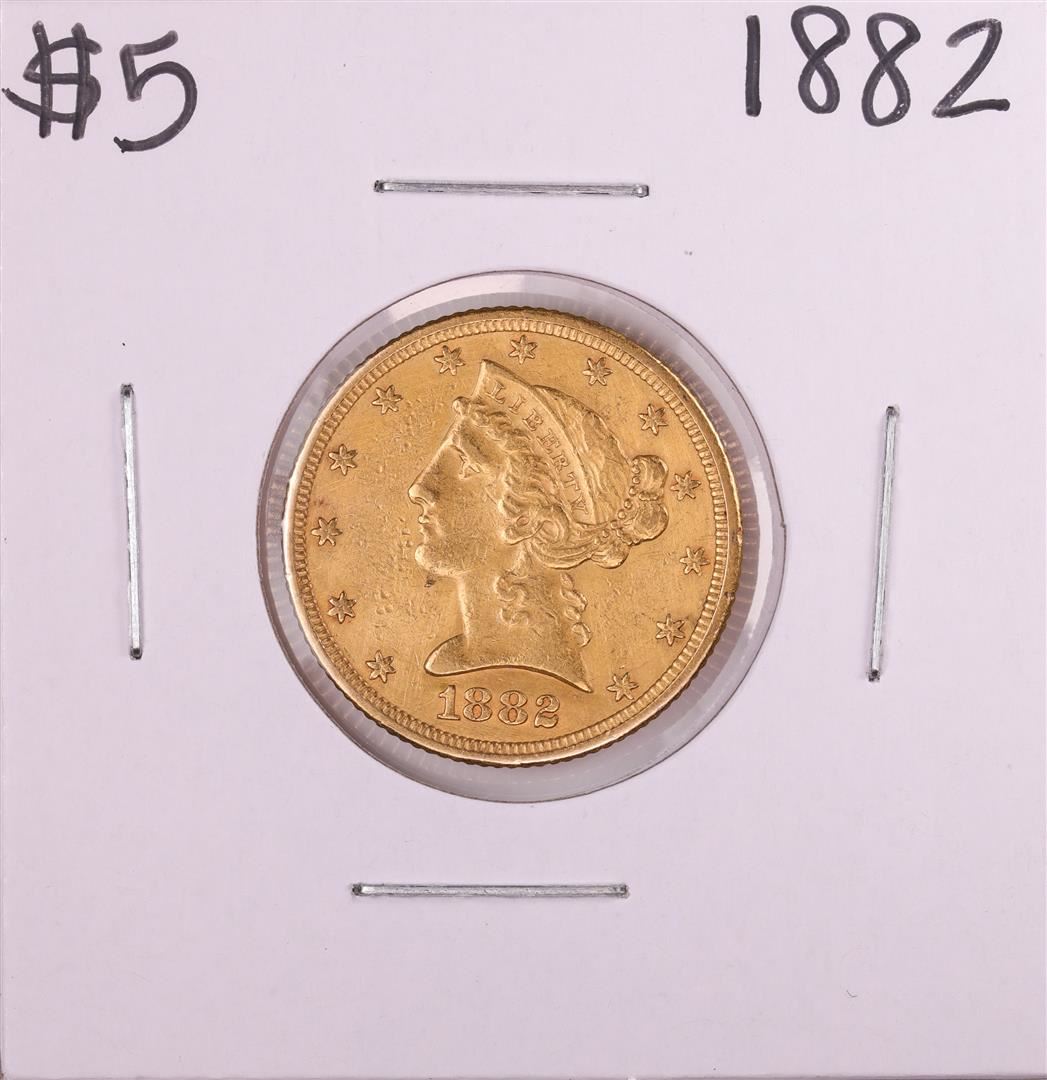 One 1882 $5 Liberty Head Half Eagle Gold Coin.