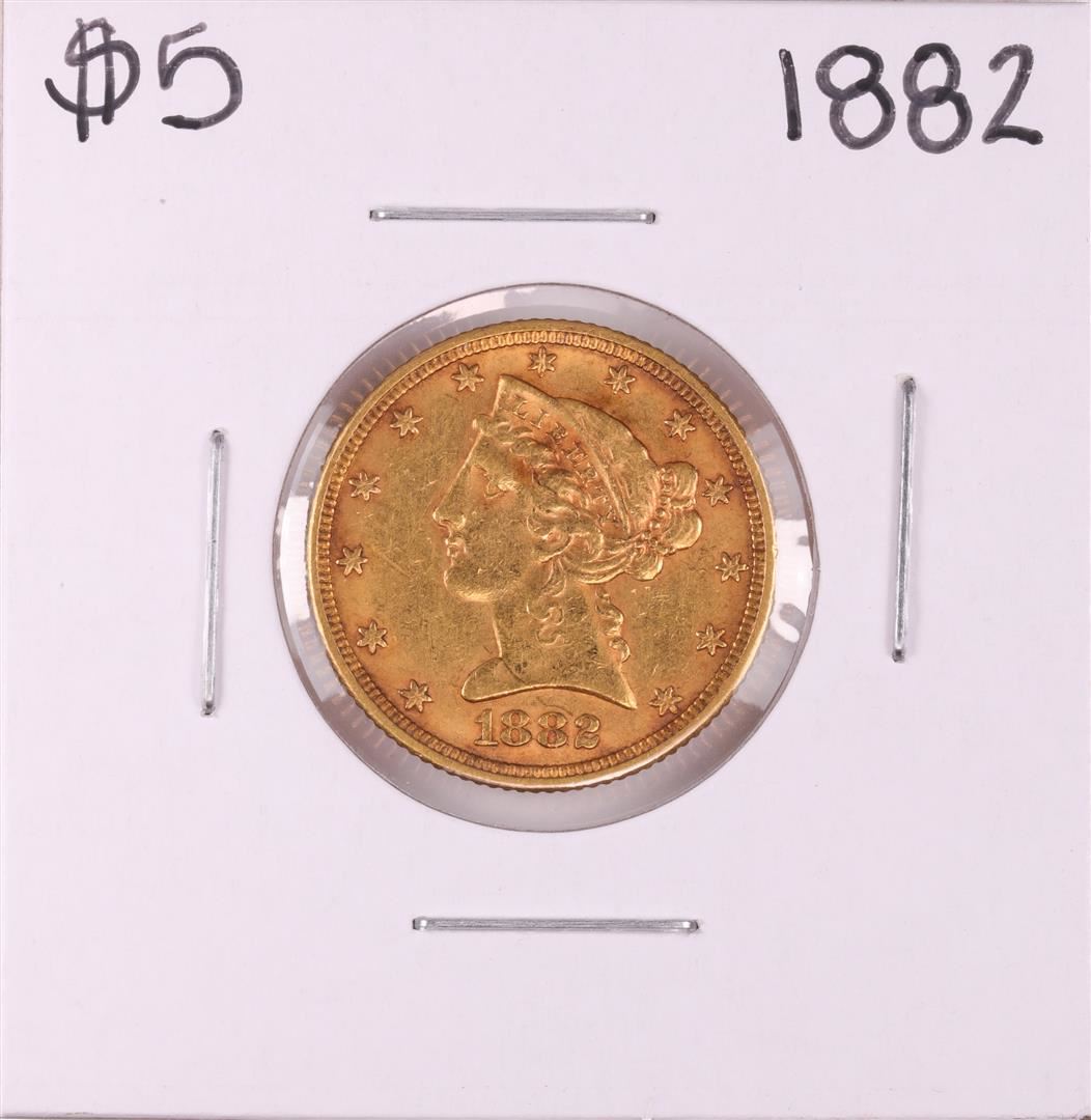 One 1882 $5 Liberty Head Half Eagle Gold Coin.