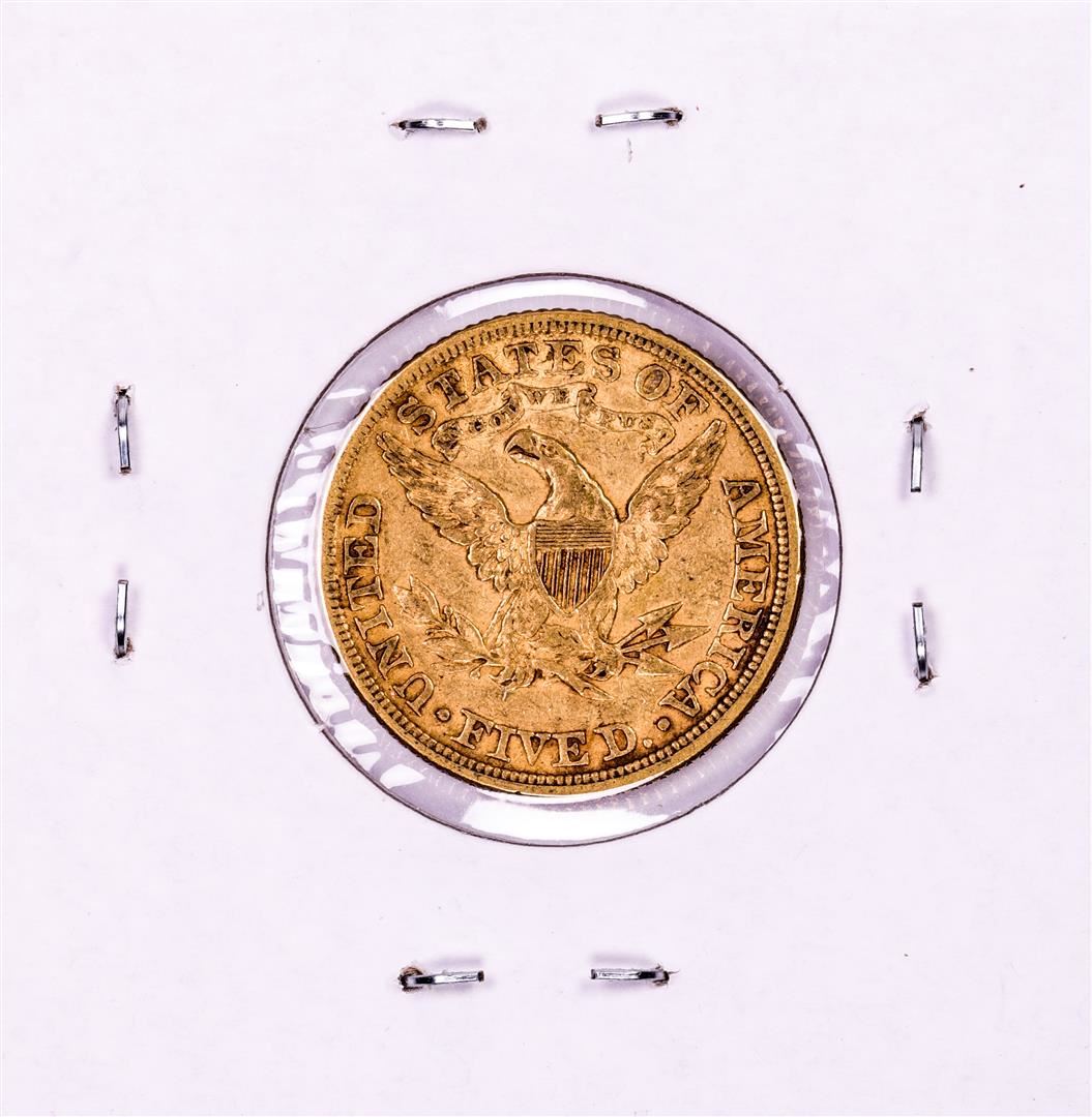One 1882 $5 Liberty Head Half Eagle Gold Coin.