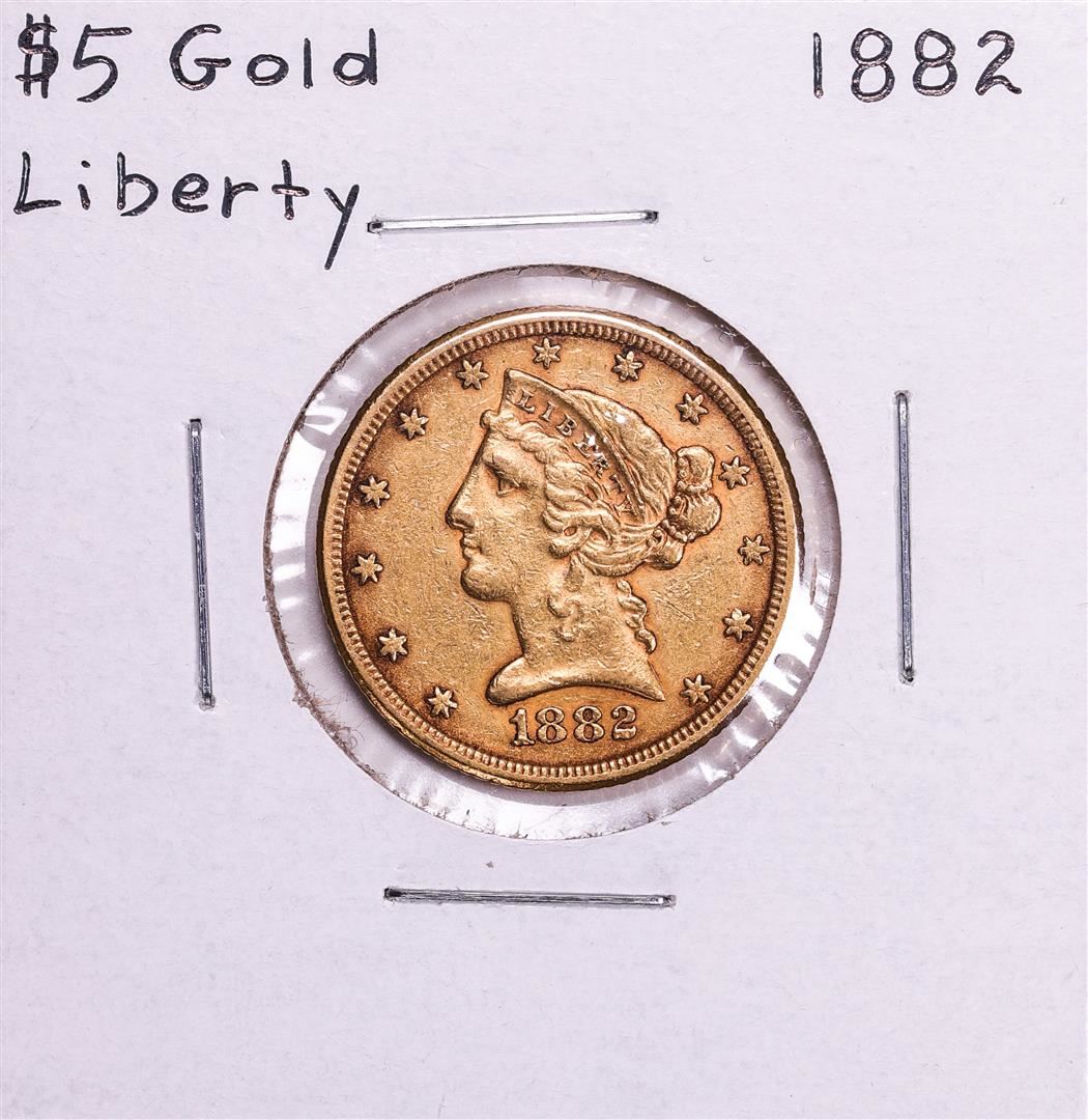 One 1882 $5 Liberty Head Half Eagle Gold Coin.