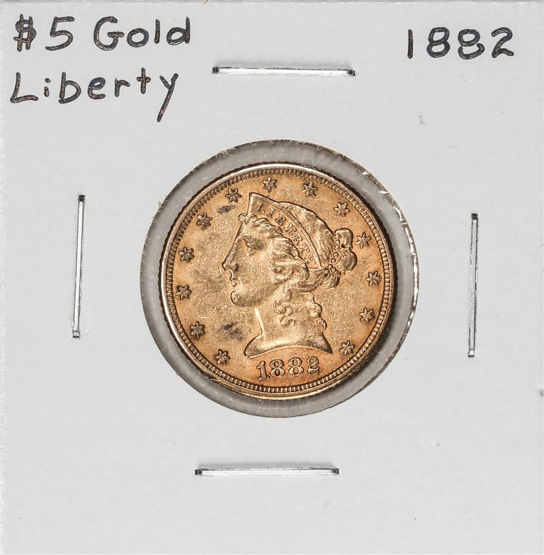 One 1882 $5 Liberty Head Half Eagle Gold Coin.