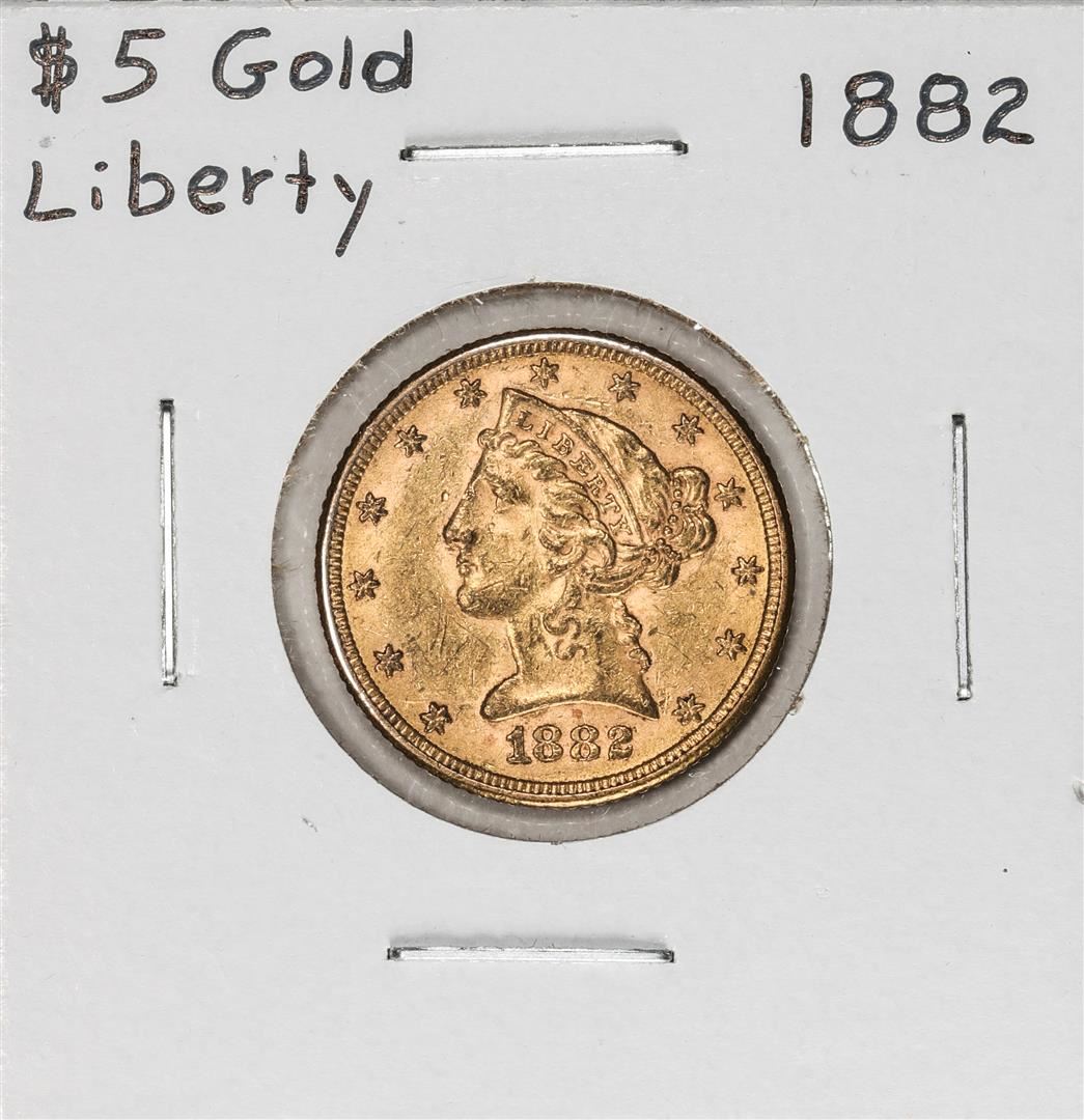 One 1882 $5 Liberty Head Half Eagle Gold Coin.
