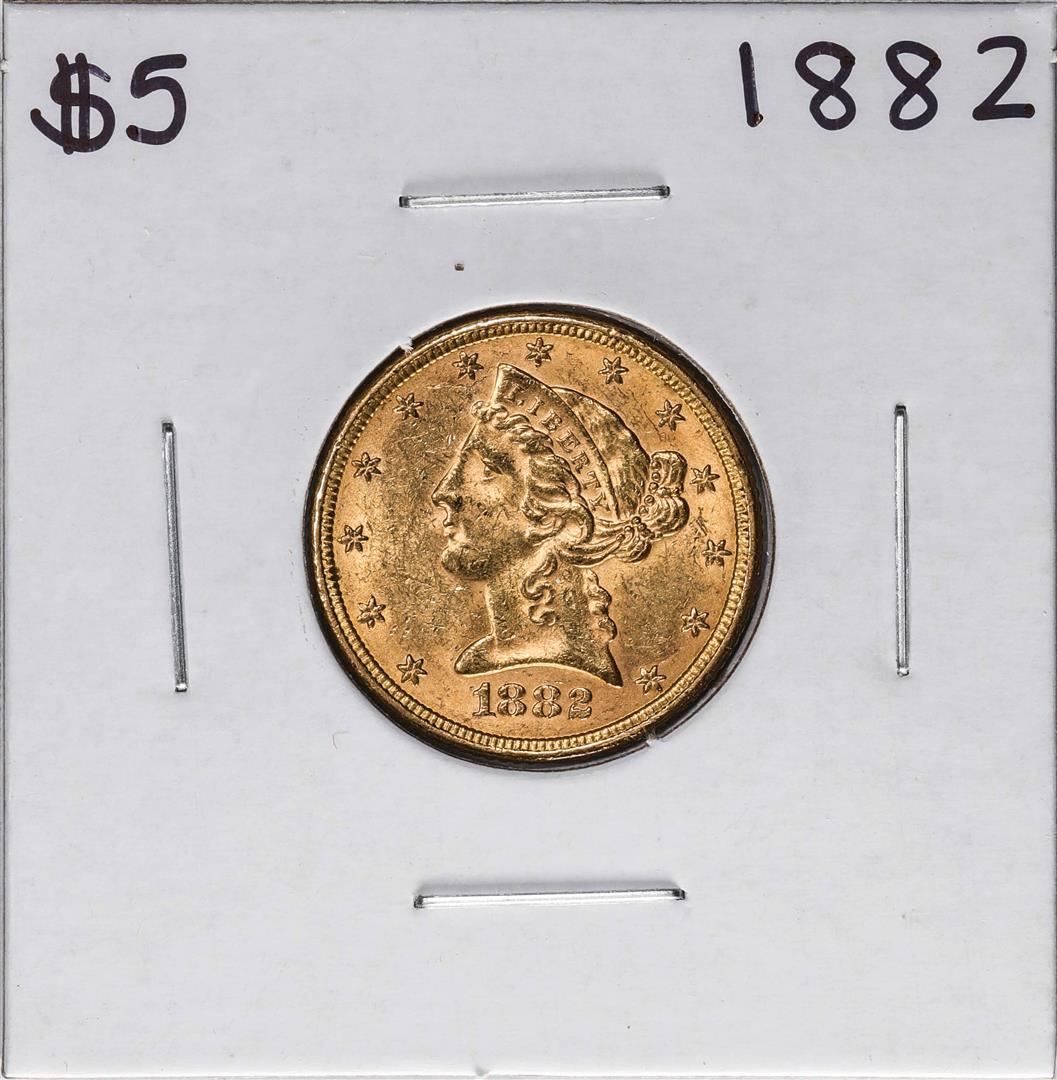 One 1882 $5 Liberty Head Half Eagle Gold Coin.