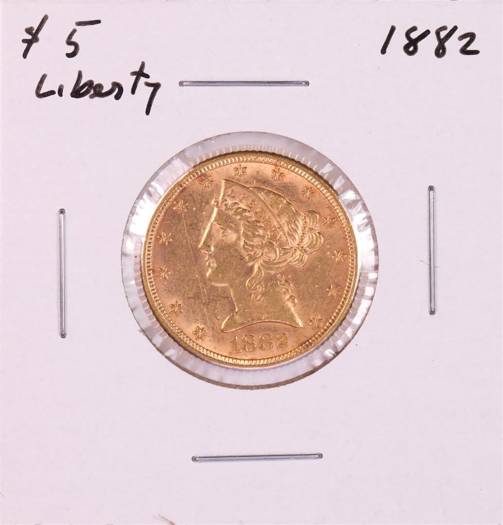 One 1882 $5 Liberty Head Half Eagle Gold Coin.