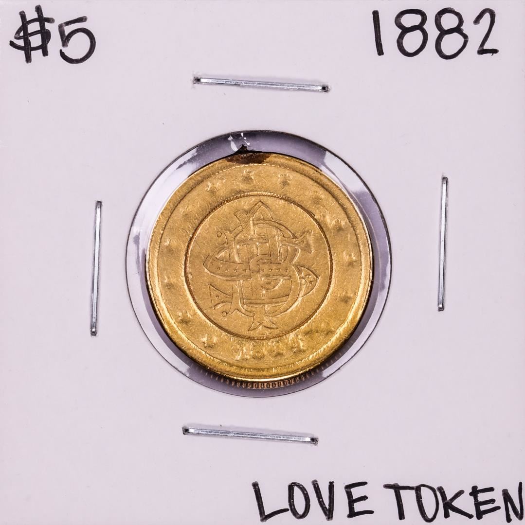 One 1882 $5 Liberty Head Half Eagle Gold Love Token Coin.