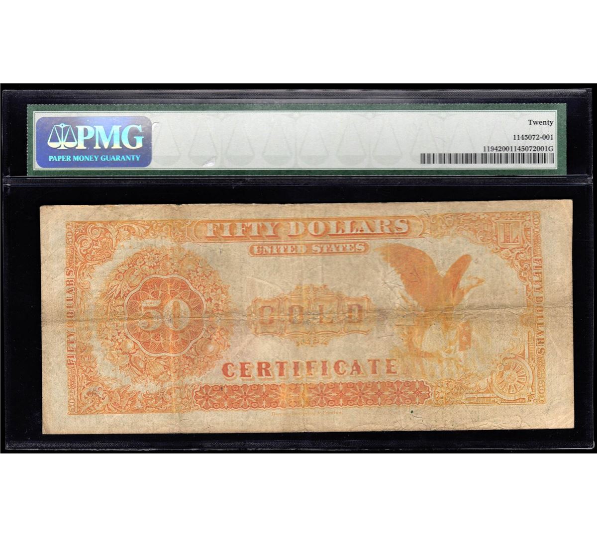 1882 $50 Large Size Gold Certificate Note PMG VF20