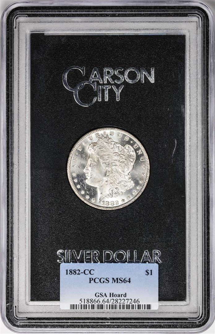One 1882-CC $1 Morgan Silver Dollar Coin GSA Hoard Uncirculated PCGS MS64. PCGS Graded.
