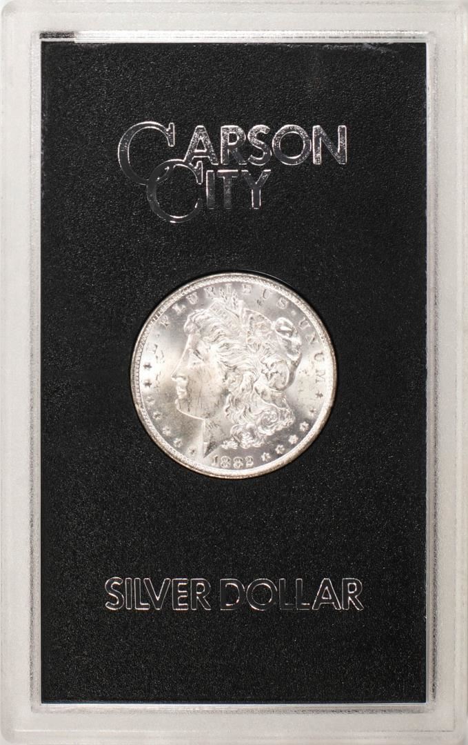 One 1882-CC $1 Morgan Silver Dollar Coin GSA Hoard Uncirculated w/Box & COA.