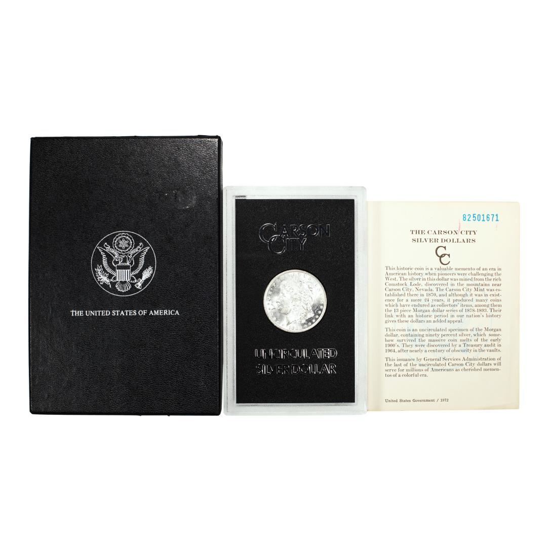 One 1882-CC $1 Morgan Silver Dollar Coin GSA Hoard Uncirculated w/Box & COA.