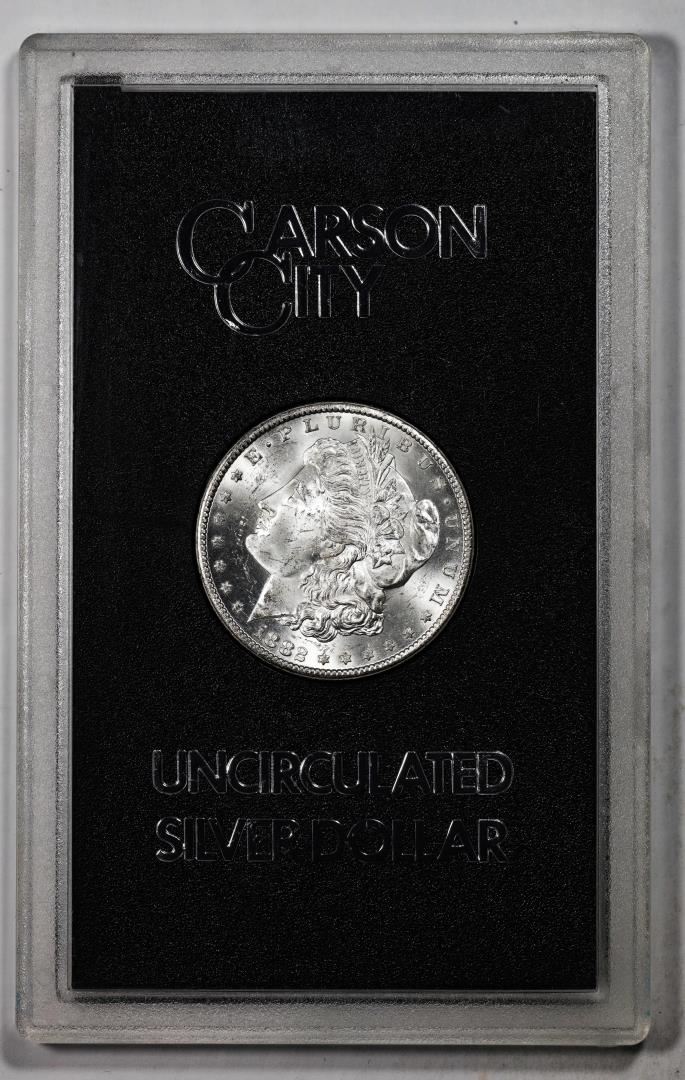 One 1882-CC $1 Morgan Silver Dollar Coin GSA Hoard Uncirculated w/Box & COA.