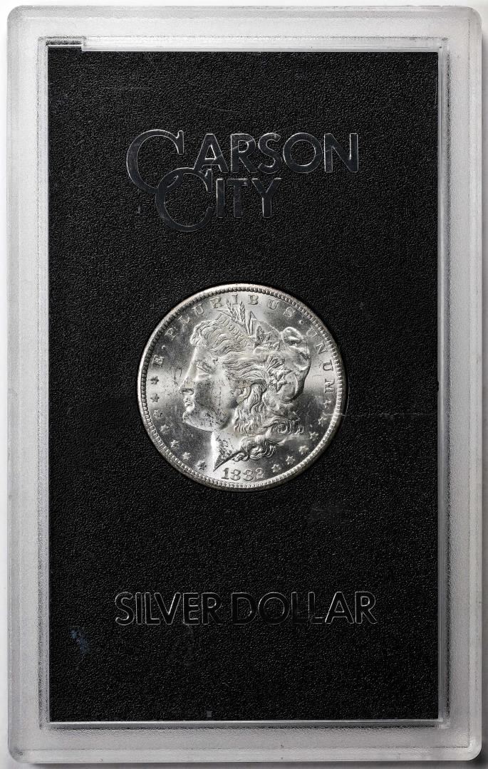 One 1882-CC $1 Morgan Silver Dollar Coin GSA Hoard Uncirculated w/Box & COA.