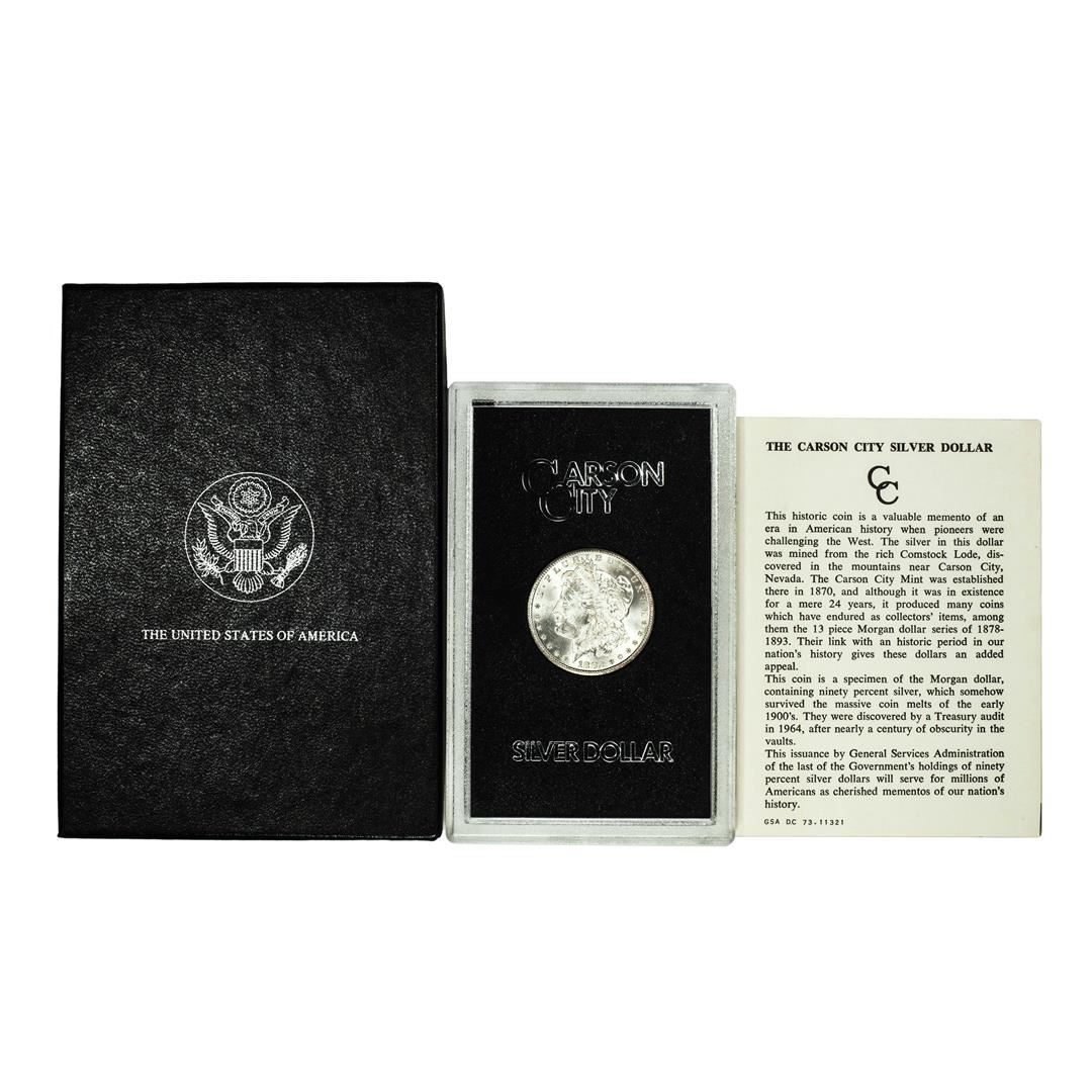 One 1882-CC $1 Morgan Silver Dollar Coin GSA Hoard Uncirculated w/Box and COA Nice Toning.