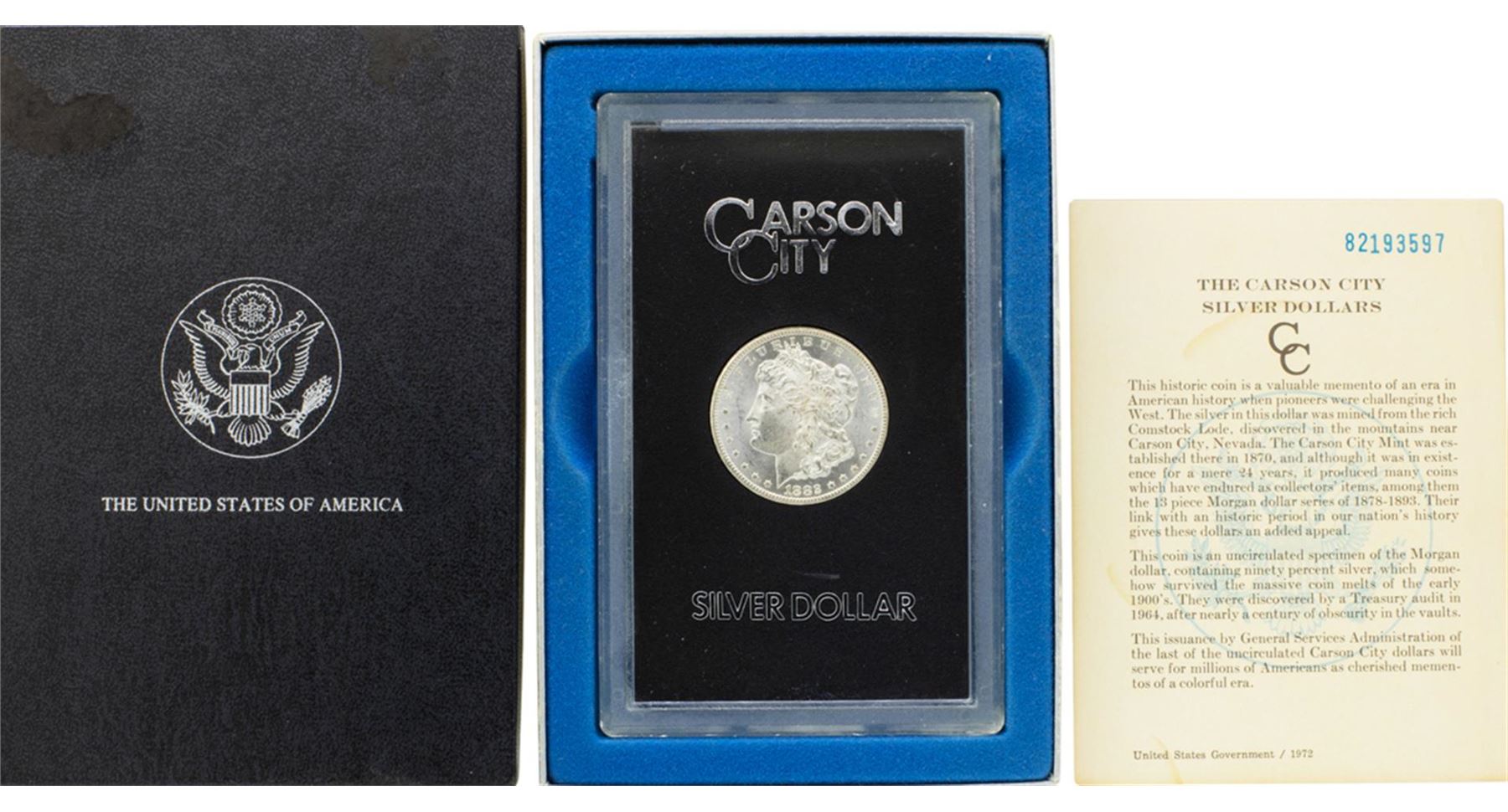 One 1882-CC $1 Morgan Silver Dollar Coin GSA Hoard w/ Box & COA.