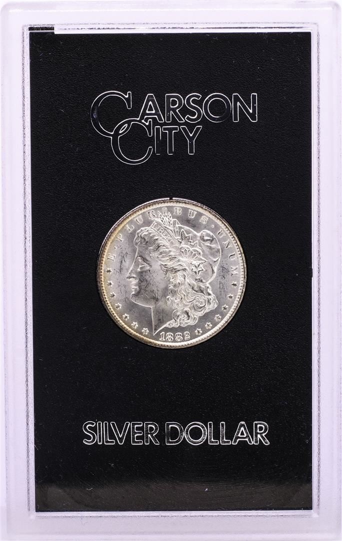 One 1882-CC $1 Morgan Silver Dollar Coin GSA Hoard with Box & COA Nice Toning.