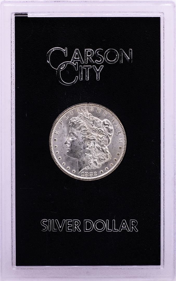 One 1882-CC $1 Morgan Silver Dollar Coin GSA Hoard with Box & COA.