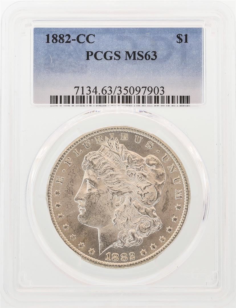 One 1882-CC $1 Morgan Silver Dollar Coin PCGS MS63. PCGS Graded.