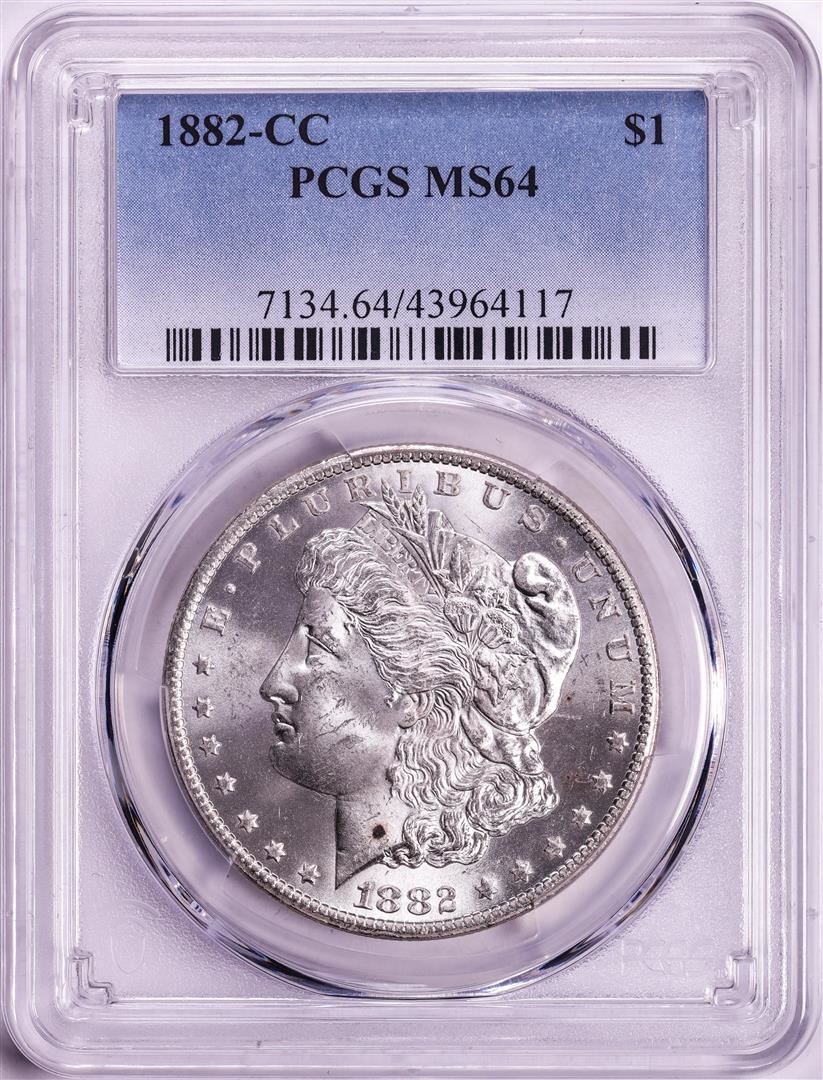 One 1882-CC $1 Morgan Silver Dollar Coin PCGS MS64. PCGS Graded.