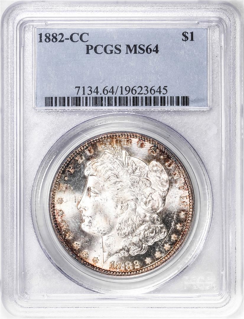 One 1882-CC $1 Morgan Silver Dollar Coin PCGS MS64. PCGS Graded.