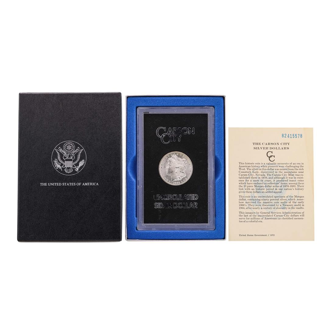 One 1882-CC $1 Morgan Silver Dollar Coin Uncirculated w/ Box GSA & COA.