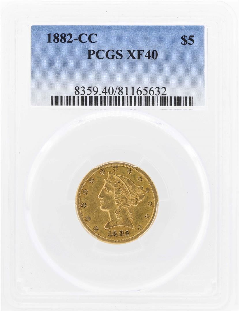 One 1882-CC $5 Liberty Head Half Eagle Gold Coin PCGS XF40. PCGS Graded.