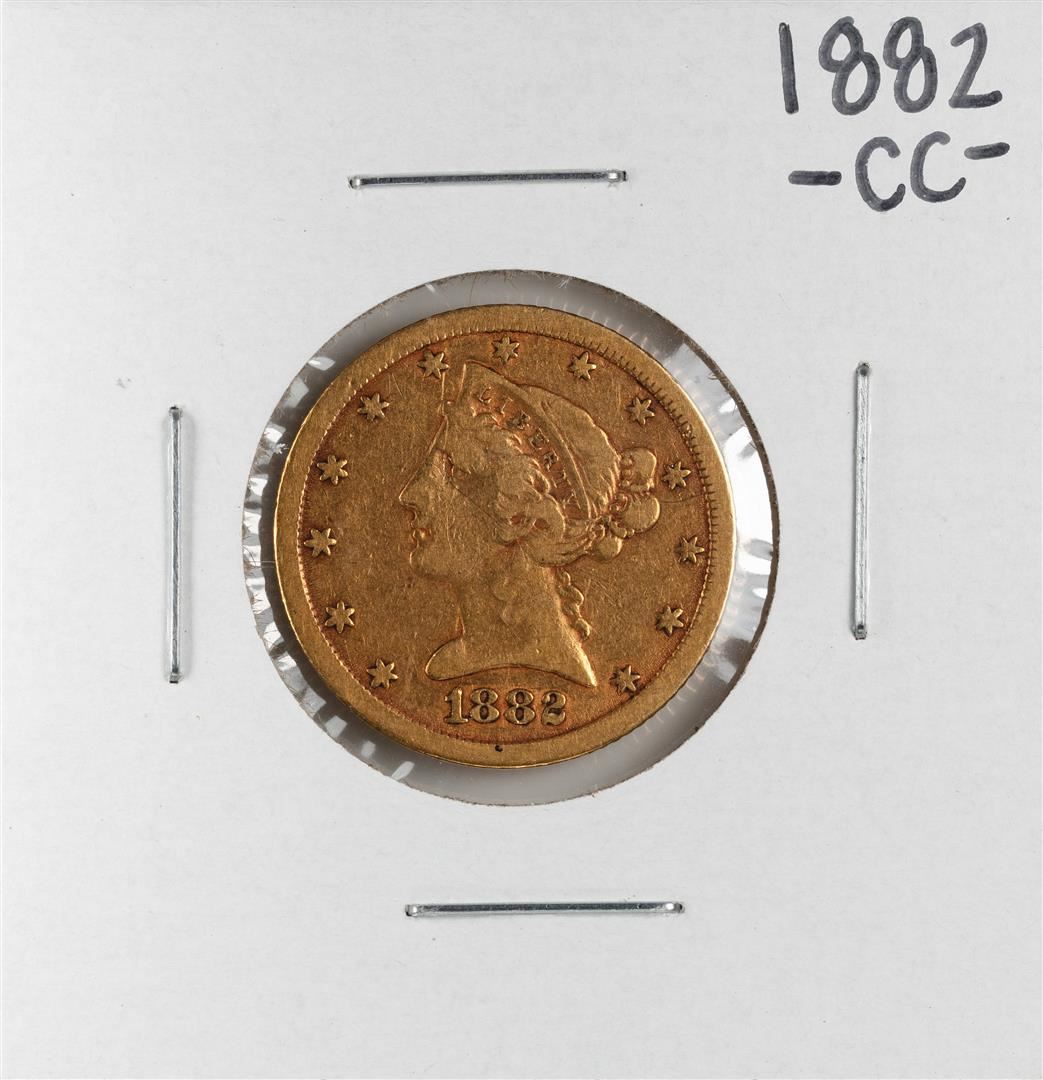 One 1882-CC $5 Liberty Head Half Eagle Gold Coin.