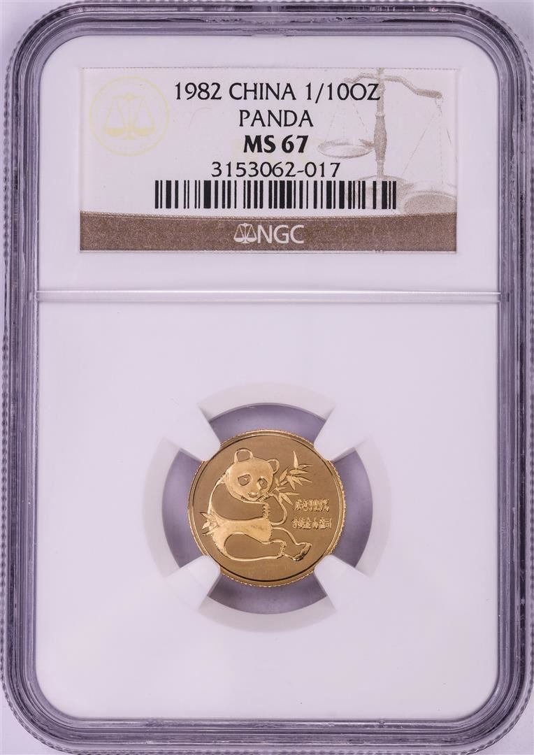 One 1882 China 1/10 oz Panda Gold Coin NGC MS67. NGC Certified.