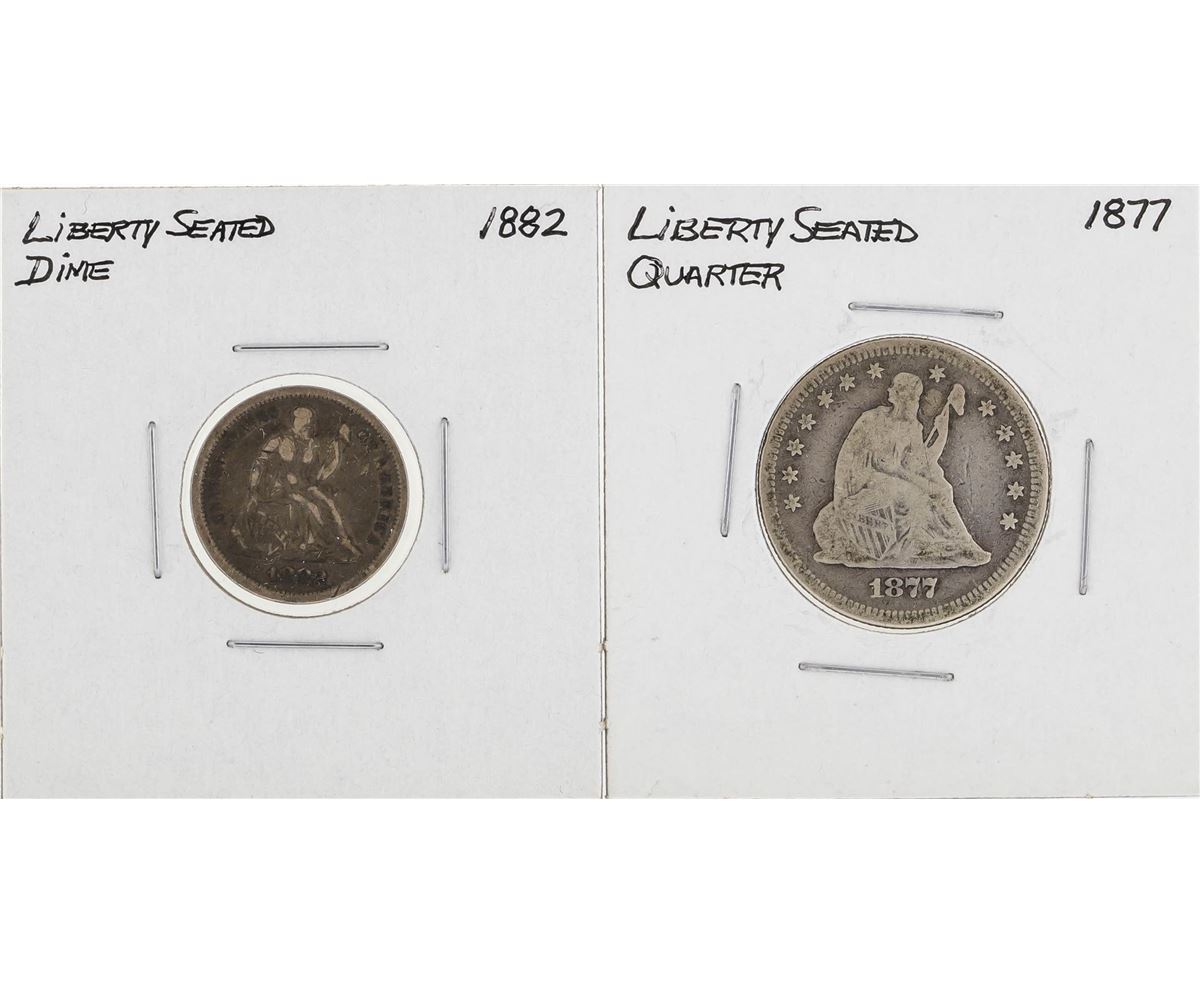 1882 Liberty Seated Dime & 1877 Liberty Seated Quarter Coins